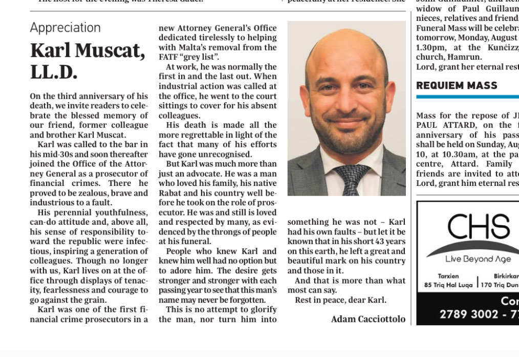 Karl Muscat would have been provided with more support had the State took care of its own: yet the State is occupied by criminal individuals like Victoria Buttigieg who tare actively using her position to protect the same individuals that would have been prosecuted by Karl Muscat. With her actions and hubris, Victoria Buttigieg has caused the perfect conditions for a smear campaign against Karl Muscat, after she had successfully isolated him and primarily caused the conditions that led to his death.