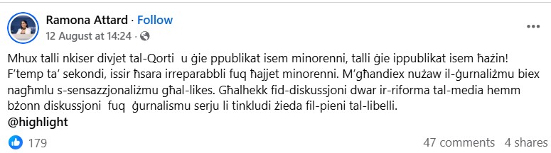 The latest Labour Party MP Ramona Attard has reiterated her call for increased libel damages against the press. Her most significant contribution to the Labour Party was, when as an employee of the government under the Joseph Muscat administration, she helped orchestrate a campaign of hatred and vilification against the journalist Daphne Caruana Galizia.