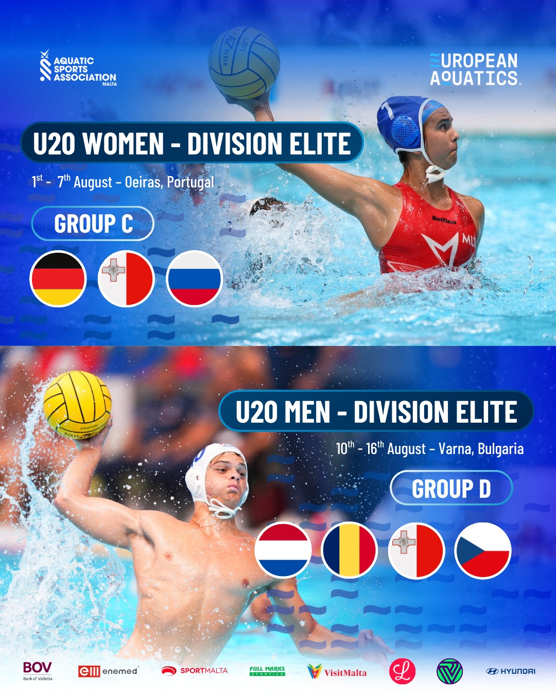 Maltaโs national youth water polo sides have discovered their group-stage opponents for the 2026 European Under-20 Elite Championships, following the official draws for both the womenโs and menโs competitions.