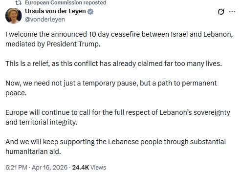 There was celebratory gunfire in Beirut, after a US-brokered ceasefire between Hezbollah and Israel in Lebanon was effected yesterday night. A meeting in Washington earlier this week between the two parties proved unsuccessful. President Trump also said that Lebanese President Joseph Aoun and Israeli Prime Minister Benjamin Netanyahu will also be meeting for talks.